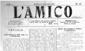A imagem é um segmento de jornal digitalizado. Mesmo com as marcas do tempo, é possível ler o conteúdo linguístico, redigido inteiro em língua italiana.