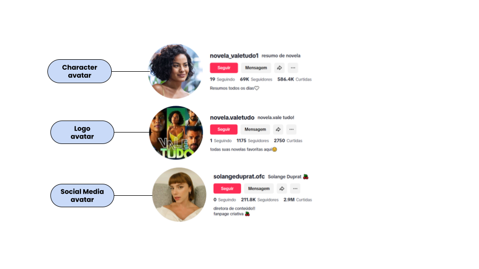 The analysis of the critical and creative skills of Vale Tudo fans on TikTok highlights their knowledge of the fictional universe as well as their grasp of the platform’s informational architecture. In this sense, devoted viewers went beyond simply reproducing original material; they mobilize aesthetic, narrative, and multimodal resources to reinterpret the storyline. The use of profile pictures, soundtracks, graphic effects, and hashtags demonstrates a command of TikTok’s affordances and reveals fans’ ability to segment audiences and expand the spread of videos.