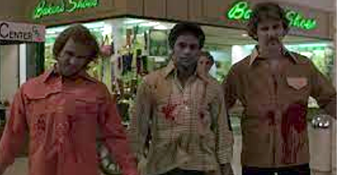 La figura arquitectónica del centro comercial cuenta con una larga historia social. Walter Benjamin (1972) los pensó alrededor de los cambios de la arquitectura urbana planteada por la modernidad, estas arquitecturas forjaron un desplazamiento de actividades cotidianas permitiendo la dinamización de la economía el ocio y el consumo. Los cuatro sobrevivientes se convierten en una especie de “flâneur” que deambulaban libremente entre tiendas, sin comprar nada, solo tomar las mercaderías para saciar los instintos de supervivencia, es constituida su pasatiempo, donde pierden la noción de peligro que los asecha, y abrazan el consumo como la forma de escapar a la invasión zombi.