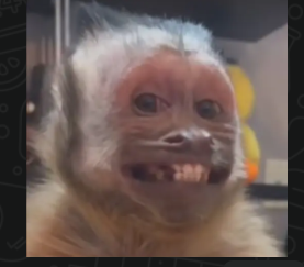 Mono con sonrisa tensa, mirada fija y expresión nerviosa o forzada |