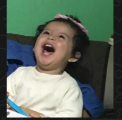 Niña riéndose con la boca muy abierta con risa intensa y desbordada |