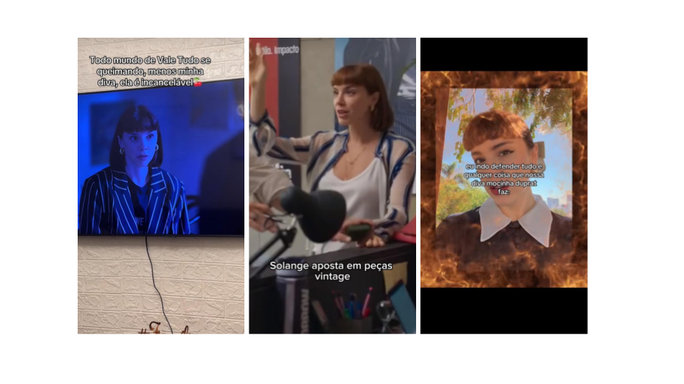 Within the Pedagogy of Pop dimension, the identification skill can be seen in videos related to Solange. In both versions of Vale Tudo, the character is portrayed as a strong heroine, a defender of feminist values who stands against the manipulation and corruption typical of Brazil’s elite. Fan videos - especially edits - associated Solange with empowerment, highlighting not only her ethical principles but also her dedication to work and her wardrobe.